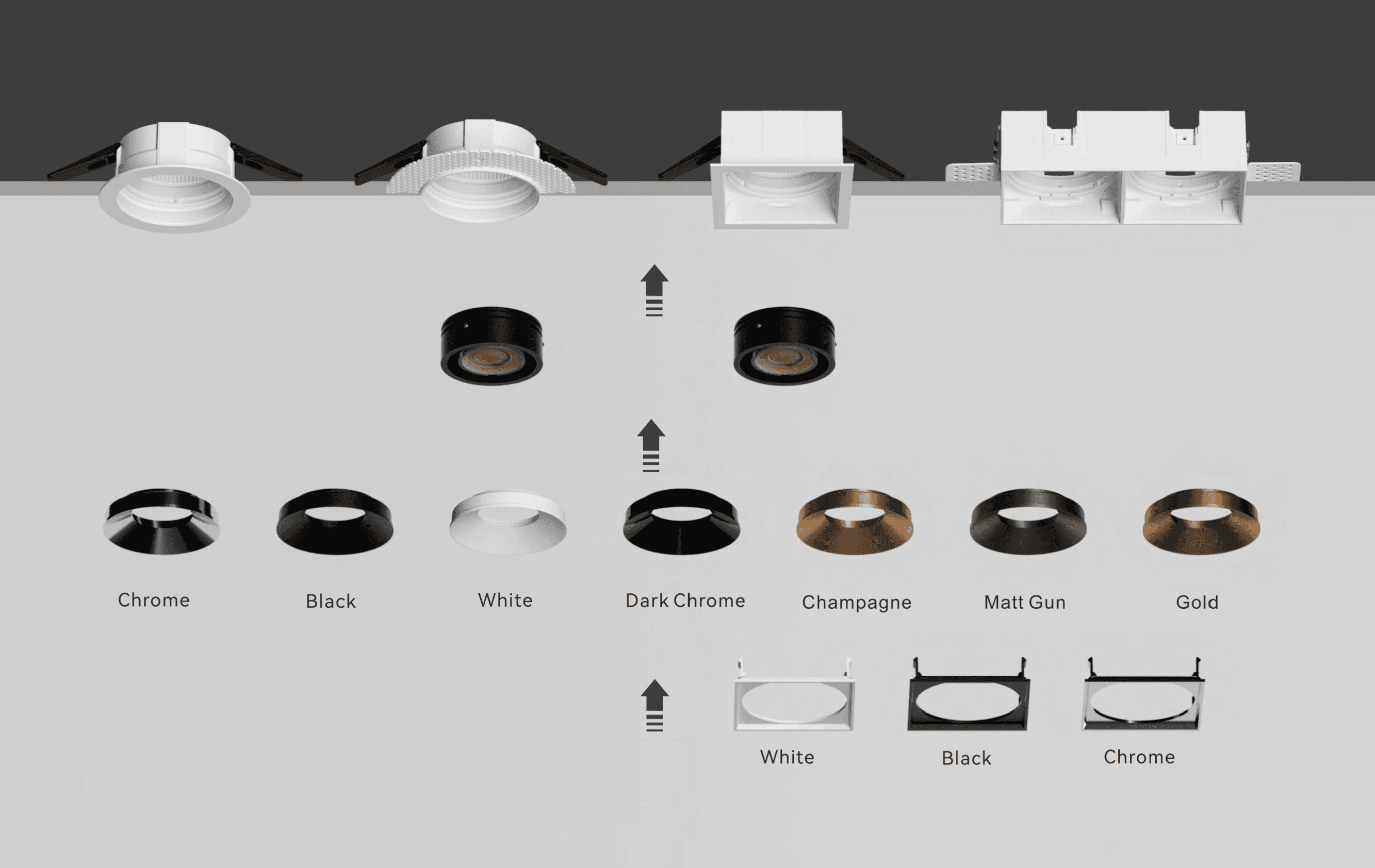 Uniek aan dit systeem is de naadloze combinatie met 24V LED strips op één gezamenlijke aansturing. Downlights en strips werken perfect samen op dezelfde driver en dimtechniek, wat zorgt voor een consistent lichtbeeld, eenvoudige installatie en maximale flexibiliteit in ontwerp en gebruik. Dit maakt het systeem uitermate geschikt voor keukens, kasten, nissen en luxe interieurs waar verschillende lichtaccenten samenkomen.